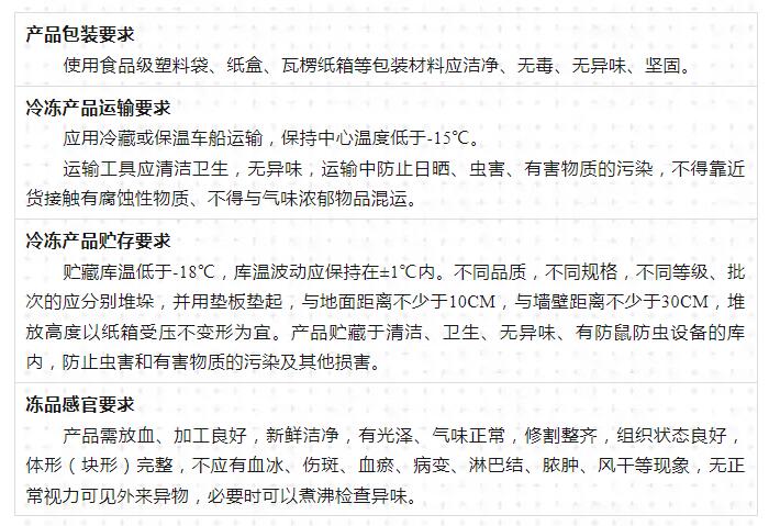 冷凍,指經凍結處理后其中心溫度低于零下15℃的產品